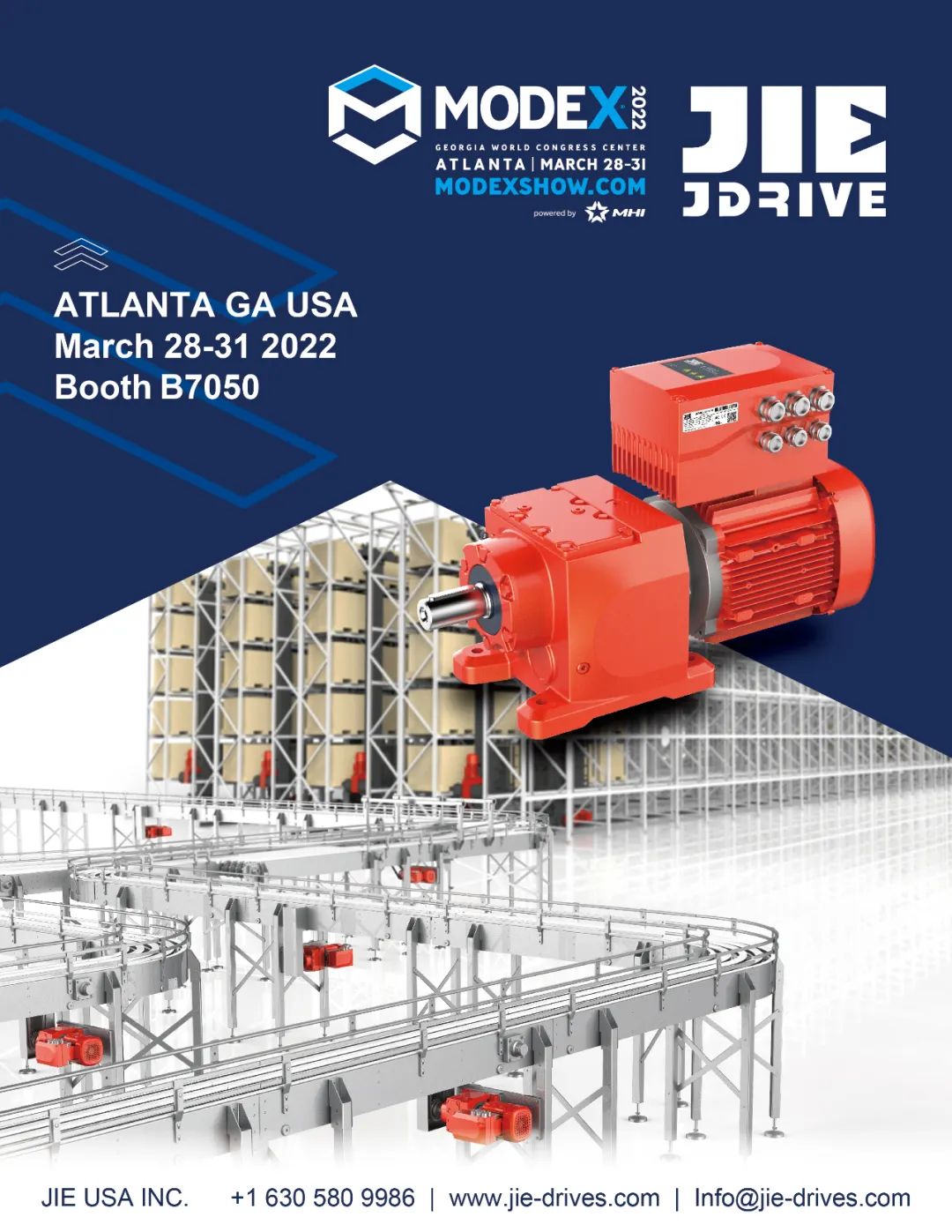 2022年3月28-31日,杰牌美國(guó)公司亮相美國(guó)亞特蘭大運(yùn)輸物流MODEX展覽會(huì),運(yùn)輸物流行業(yè)—杰牌智能傳動(dòng)方案提供商。