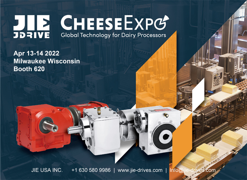 2022年4月13—14日,杰牌美國公司亮相美國威斯康星州奶酪乳清加工CHEESEEXPO博覽會,乳制品行業(yè)—杰牌智能傳動方案提供商。