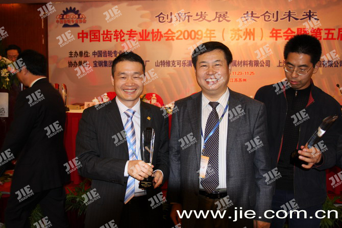 2009年11月23-25日,中國齒輪專業(yè)協(xié)會2009年年會暨第五屆會員大會在蘇州順利召開,本次年會共有300多家會員單位參加,會議通過“關(guān)于表彰中國齒輪行業(yè)二十年優(yōu)秀企業(yè)和個人的決定”、“中國齒輪專業(yè)協(xié)會第五屆會員大會換屆選舉辦法”,公司獲得“齒輪行業(yè)技術(shù)創(chuàng)新進步獎”榮譽稱號,總裁陳德木先生獲得“齒輪行業(yè)工作貢獻獎”榮譽稱號,并當選為中國齒輪專業(yè)協(xié)會副會長。