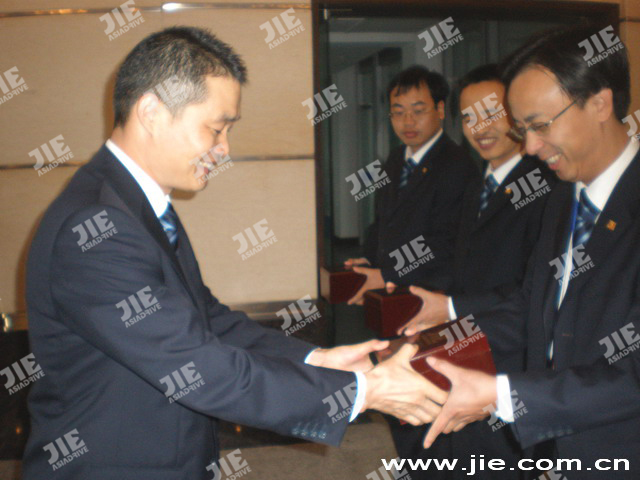 2008年11月8日,杰牌事業(yè)20周年紀(jì)念品贈(zèng)送儀式在各公司舉行,集團(tuán)總裁陳德木先生及各公司領(lǐng)導(dǎo)為每位員工送上了“杰牌控股20周年紀(jì)念”禮品。